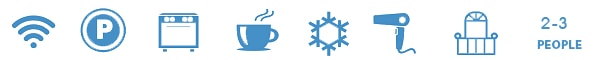 All the studios can host 3 people except n° 2 which can host 2 people.